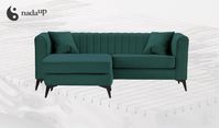 - Canapé d'angle, avec une partie prolongée, repose sur des bas pieds.