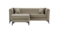 - Canapé d'angle, avec une partie prolongée, repose sur des bas pieds.