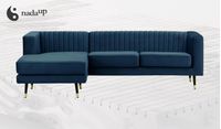 - Canapé d’angle avec pieds noirs et un pourtour doré